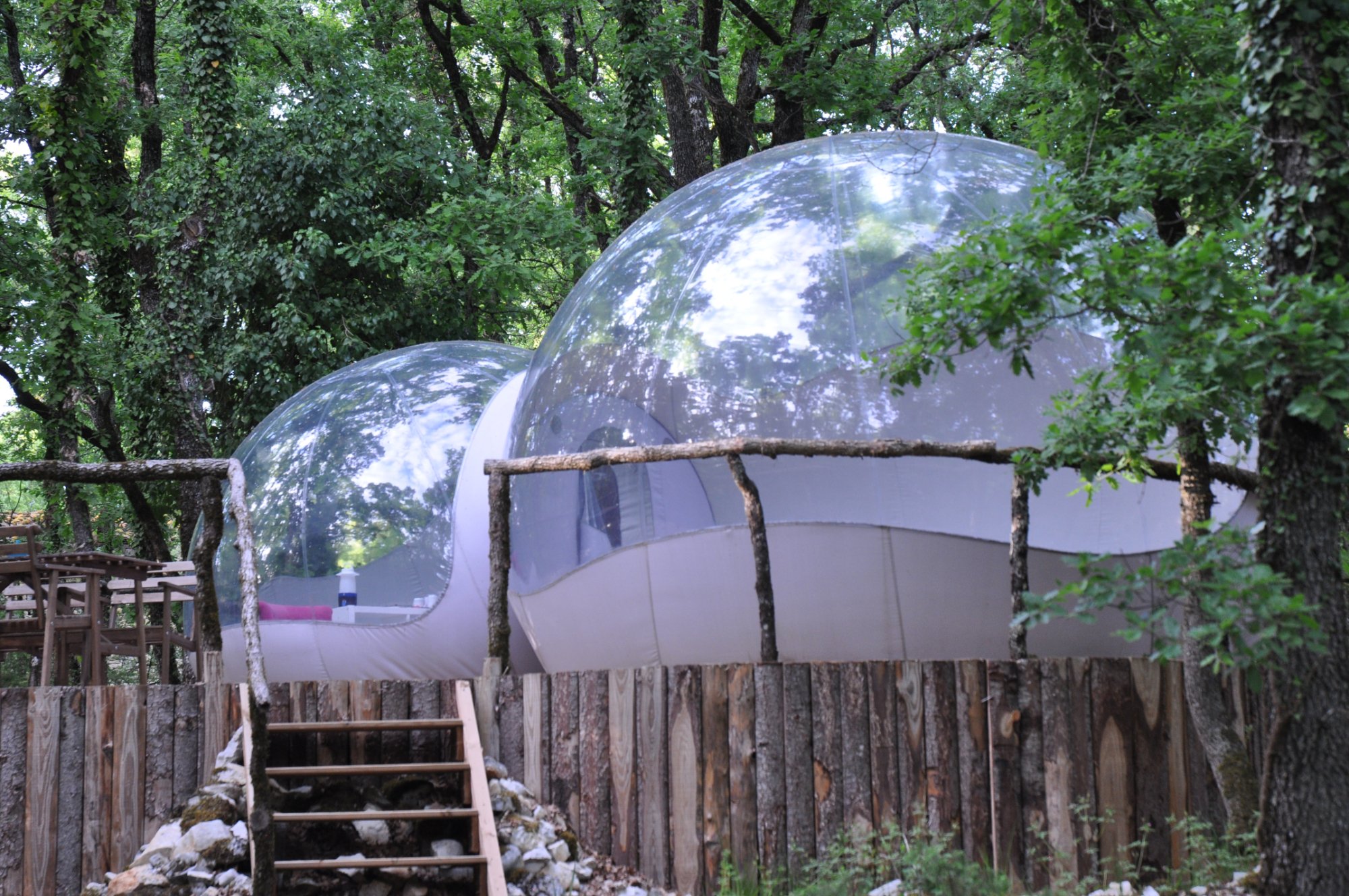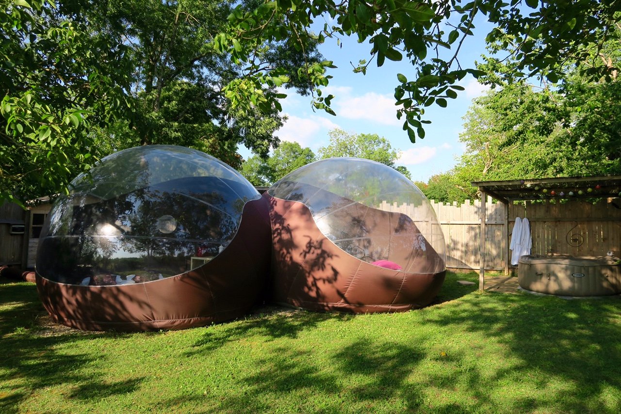 Dépaysement garanti avec notre Dôme Perché à 5 mètres de haut, notre Bull’O Sol posée dans l’herbe ou notre Bull’O Bois Dormant au milieu des Bois.