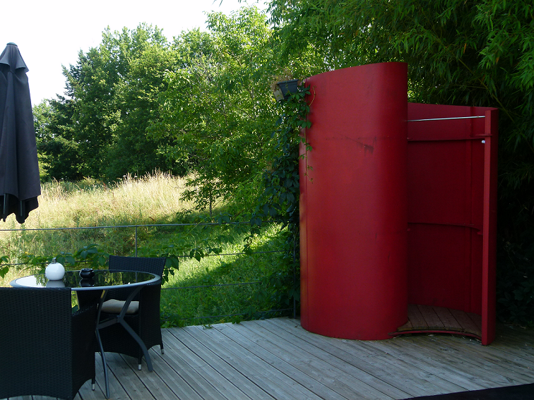 douche extérieure, petite salle d’eau et toilettes sèches