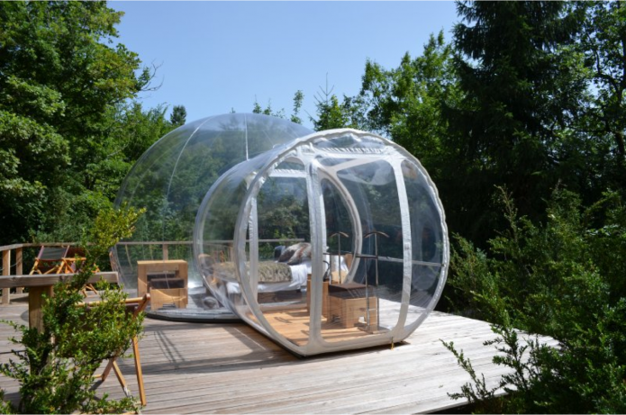 Niché au coeur de la Vallée de la Valserine, dans le Parc naturel régional du Haut-jura, entre Lyon et Genève. 3 bulles transparentes ou semi-transparentes dans l’Ain (Auvergne-Rhône-Alpes)