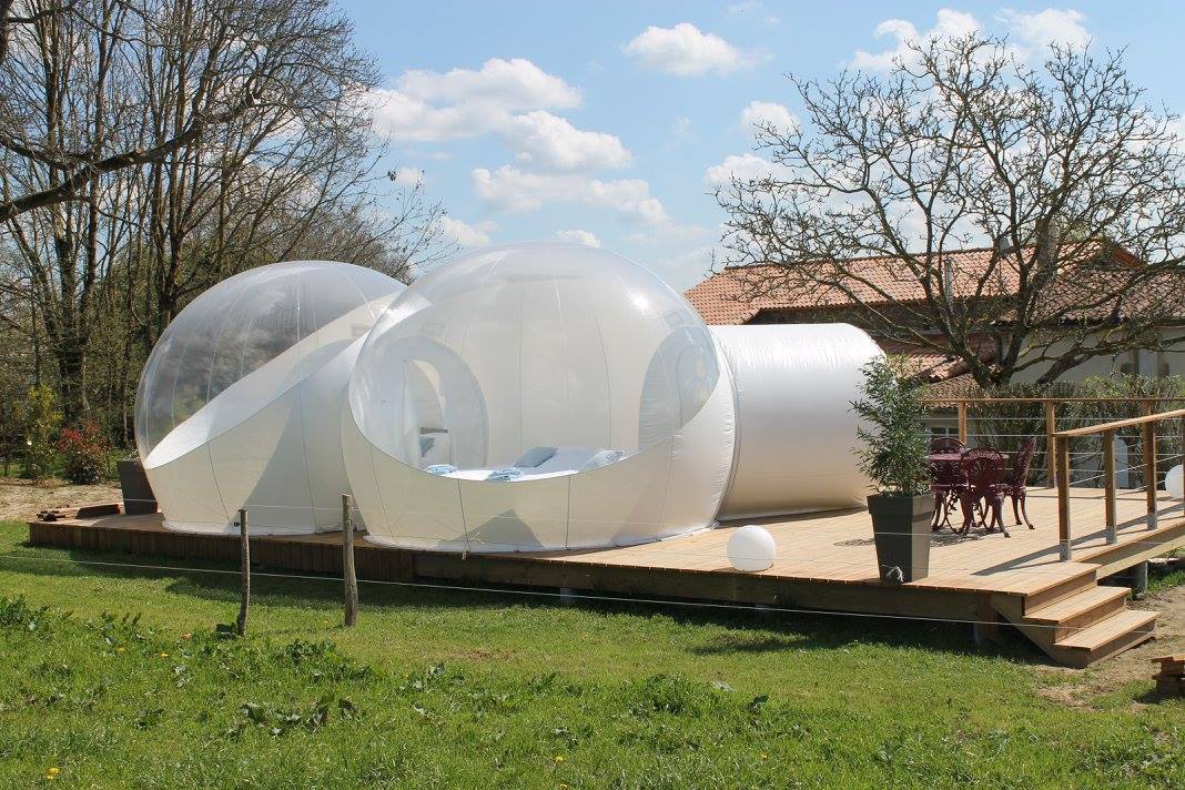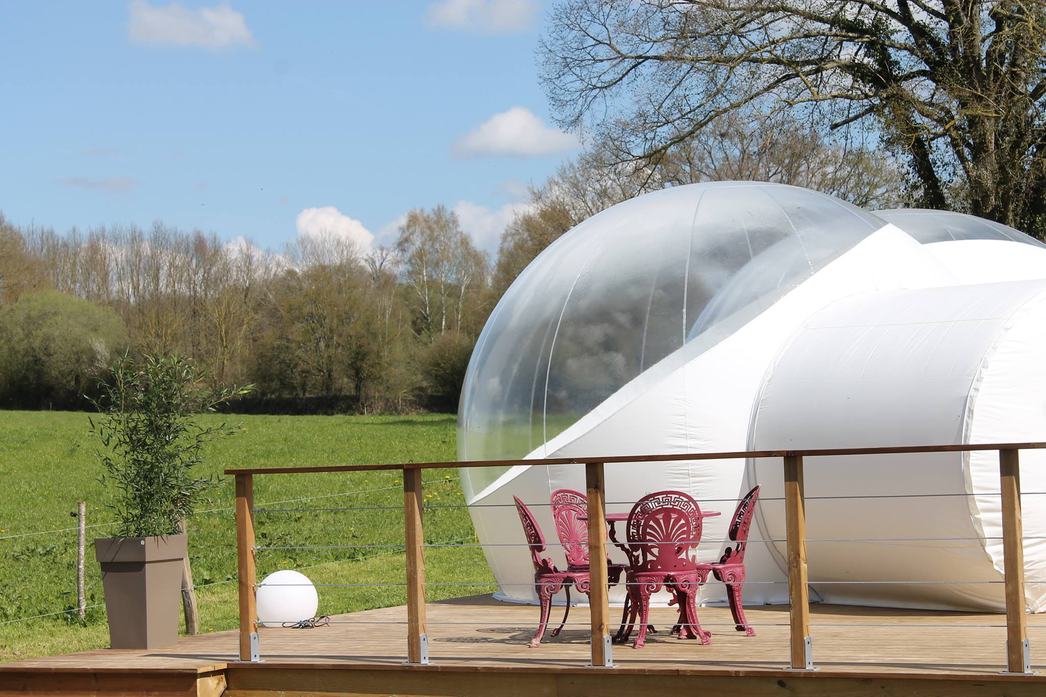Le domaine « la nuit à la belle étoile » vous invite à venir vivre une expérience unique dans son logement bulle en Poitou-Charentes. Dans un cadre naturel, à 1h de Nantes et de la Roche-sur-Yon, partagez un séjour insolite en couple, en famille ou entre amis. En effet la « Belle étoile » est une double bulle, établie sur une grande terrasse en bois, pouvant recevoir jusqu’à quatre personnes. Elle possède une partie sanitaire avec douche et WC. Et pour les jours un peu frais, pas d’inquiétude, elle est entièrement chauffée ! La bulle est placée dans une grande prairie, à l’abri des regards. Vous pourrez ainsi buller en toute intimité et en pleine nature. Pour vos repas, des formules « paniers » sont proposées. Dans ce charmant coin du Centre Est, les activités culturelles sont variées. Le Puy du Fou est à quelques kilomètres, découvrez aussi le parc oriental de Maulévrier ou encore le château de Saint-Mesmin.