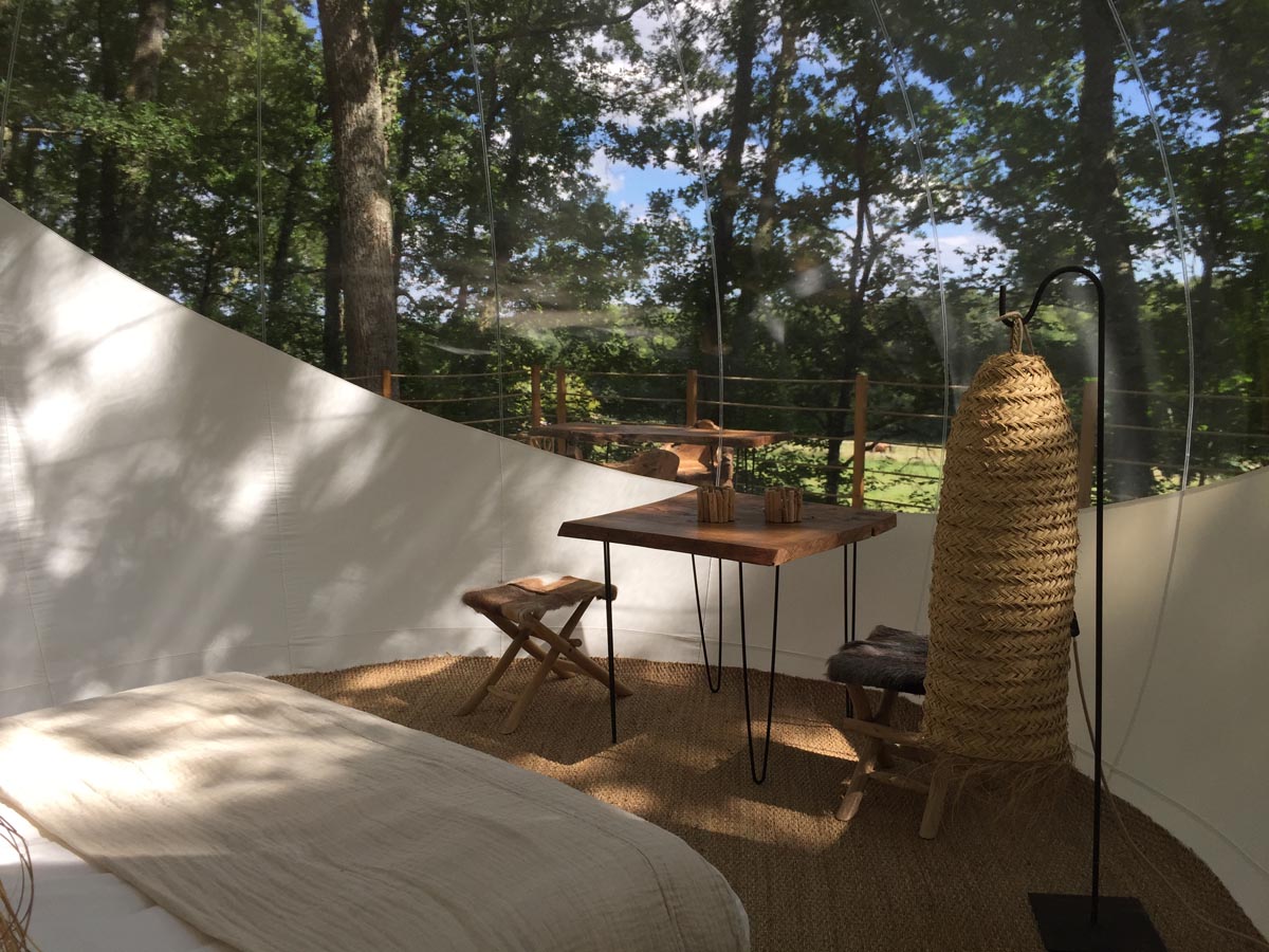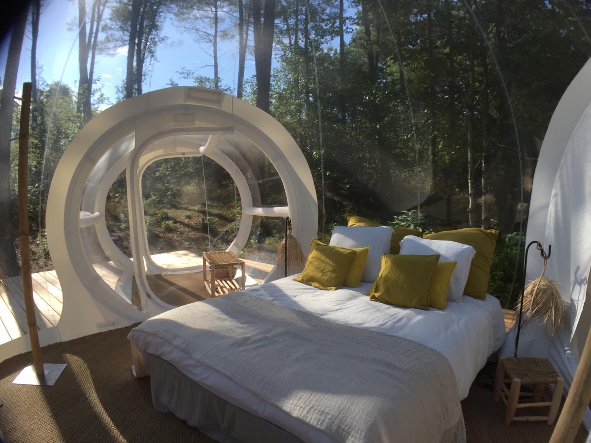 Enfouie dans la nature, entre pinède et forêt de chênes, chaque bulle s’offre à vous tel un cocon qui vous invite à prendre le temps, le temps de faire une pause.